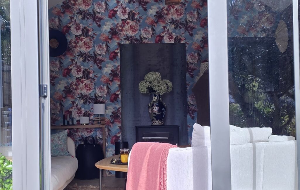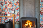 Salon chaleureux avec cheminée