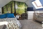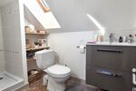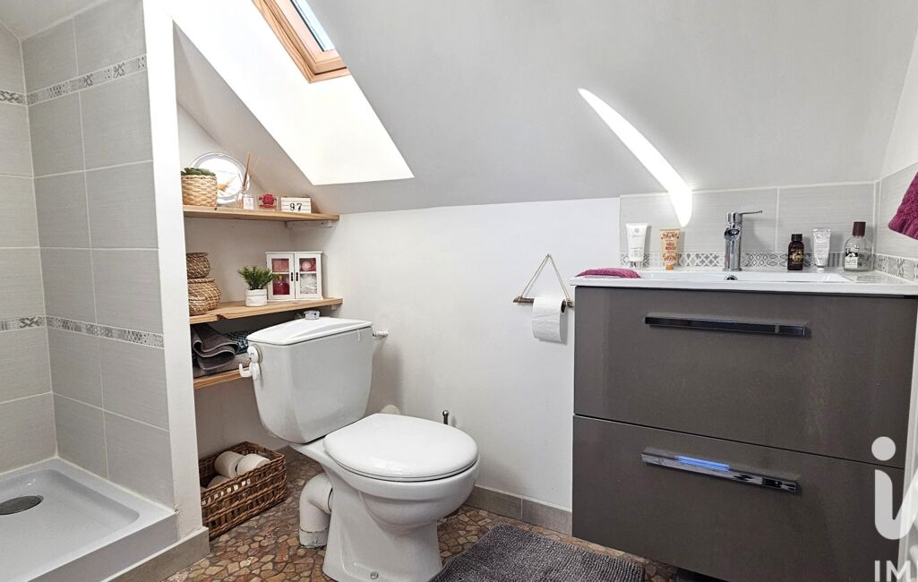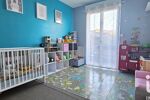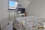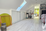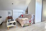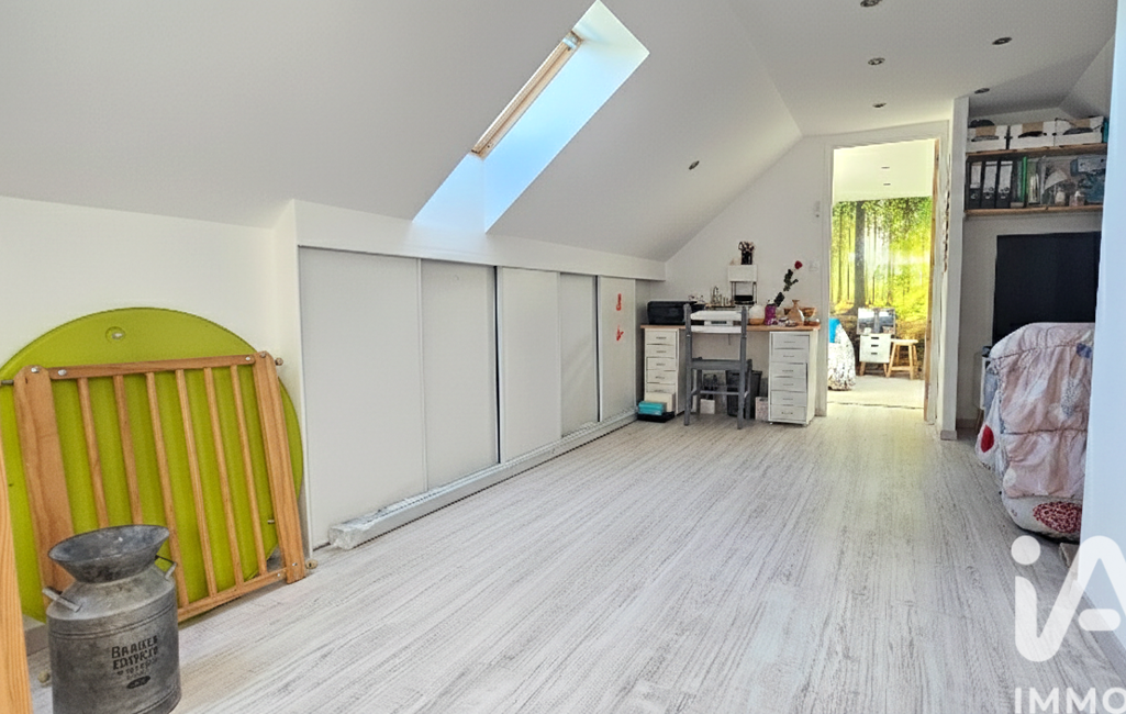 À l’étage, une grande mezzanine avec rangements accueille aujourd’hui un espace détente, salon ou salle de jeux. Elle dessert deux chambres supplémentaires, chacune équipée de placards, ainsi qu’une seconde salle d’eau avec WC.