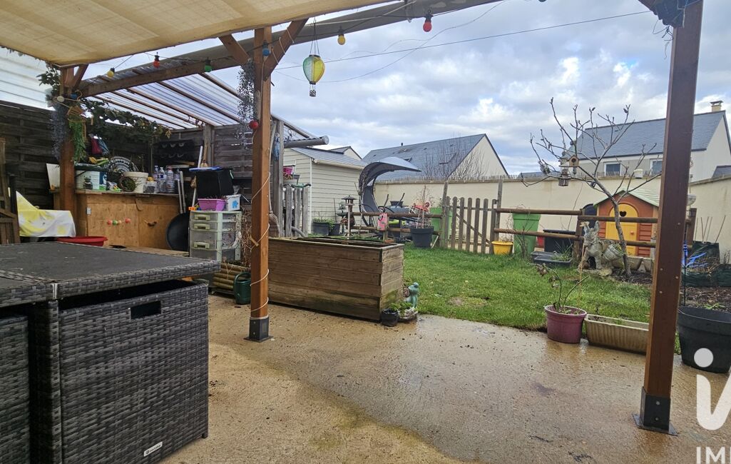 À l’extérieur, le terrain entièrement clôturé et arboré propose deux terrasses : l’une directement accessible depuis le séjour, idéale pour les repas en famille, l’autre en fond de jardin, à proximité de la cabane de jardin pour profiter d'une exposition différente. La maison se situe dans un lotissement récent et calme, avec la possibilité de stationner deux véhicules devant le garage.