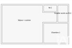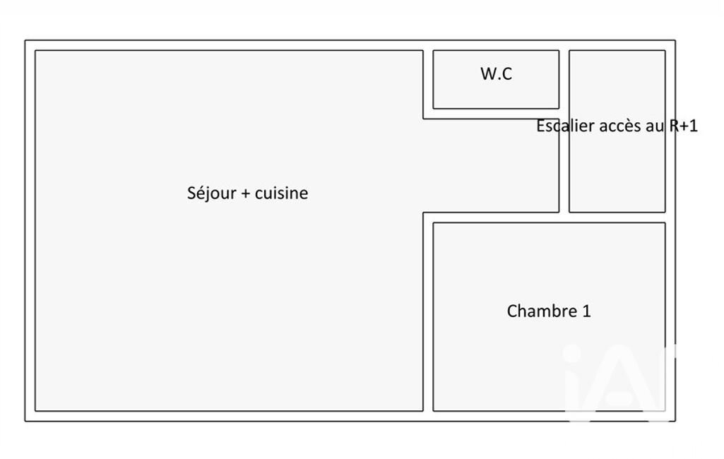 Un séjour commun avec cuisine aménagée et équipée, une chambre et un WC séparé.