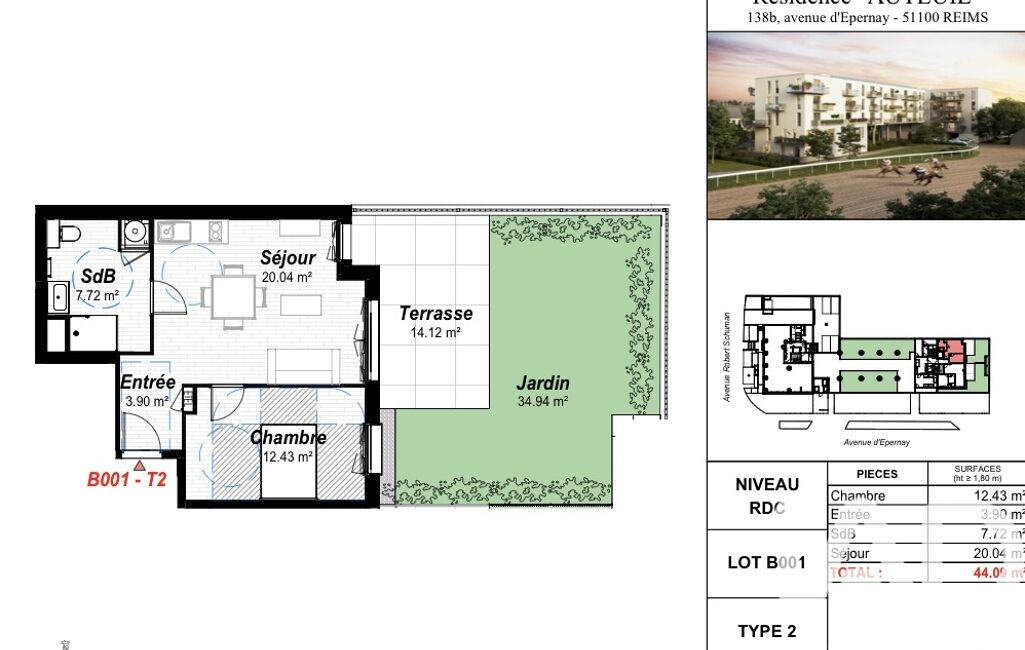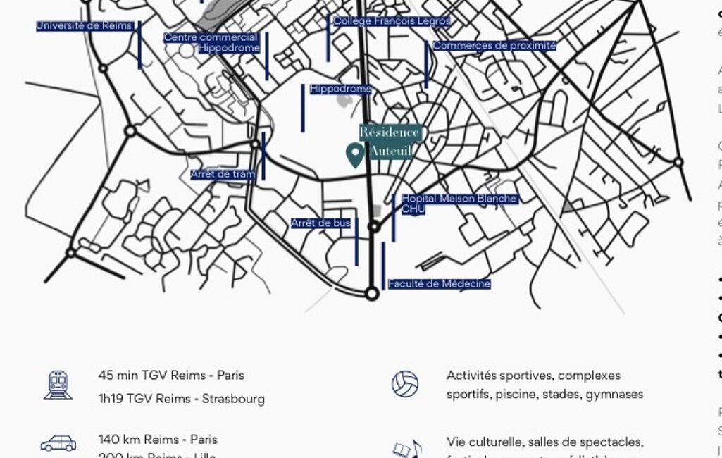iad France - Alexandra Mautrait vous propose: APPARTEMENT T2 NEUF dans résidence sécurisée située à 300mètres du CHU et à 900mètres du pôle Universitaire avec une vue imprenable sur l'hippodrome de Reims.