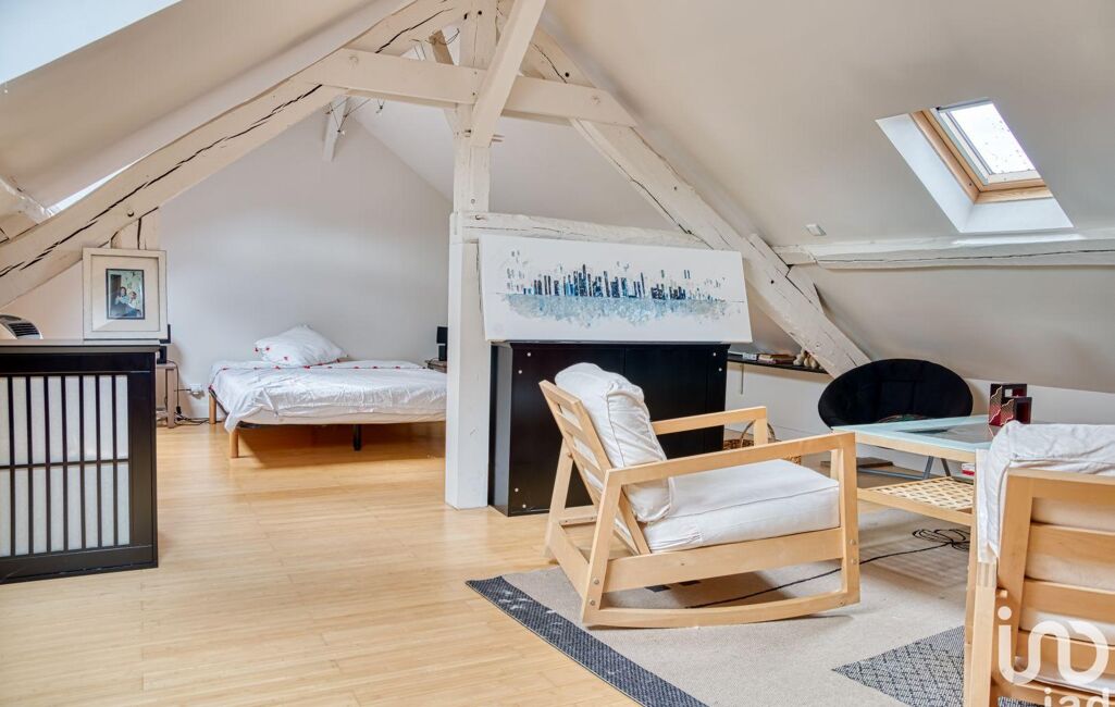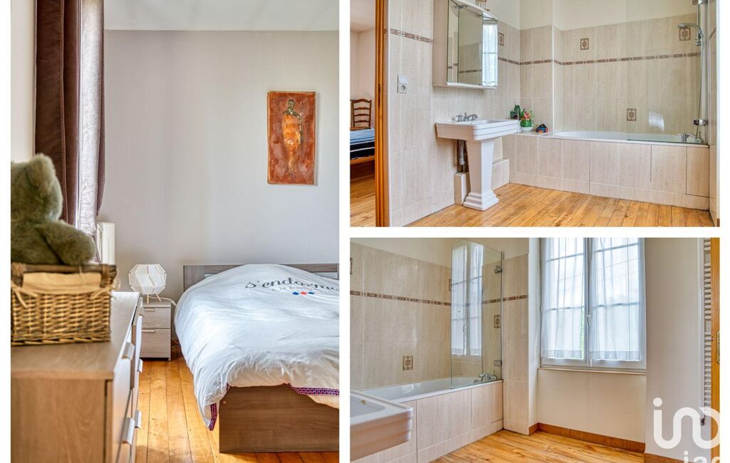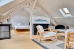 À l'étage, deux grandes chambres partagent une salle de bains et un WC. On retrouve ensuite un bureau, une très grande chambre sous combles, une salle de bains avec baignoire et douche ainsi qu'un dressing. Une chambre supplémentaire avec salle d'eau et WC bénéficie d'un accès indépendant depuis la cour intérieure en plus de son accès de la maison principale offrant ainsi une flexibilité d'aménagement. Un deuxième espace indépendant comprend une pièce de vie de 46 m² environ avec cuisine ouverte, une salle d'eau rénovée avec douche à l'italienne, un WC et une chambre en mezzanine.