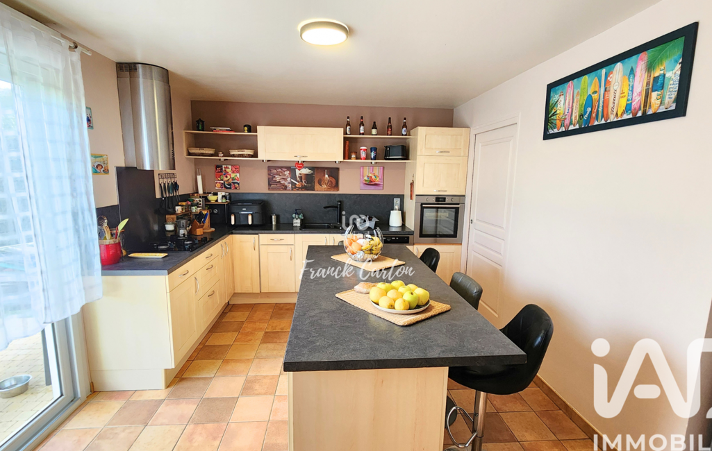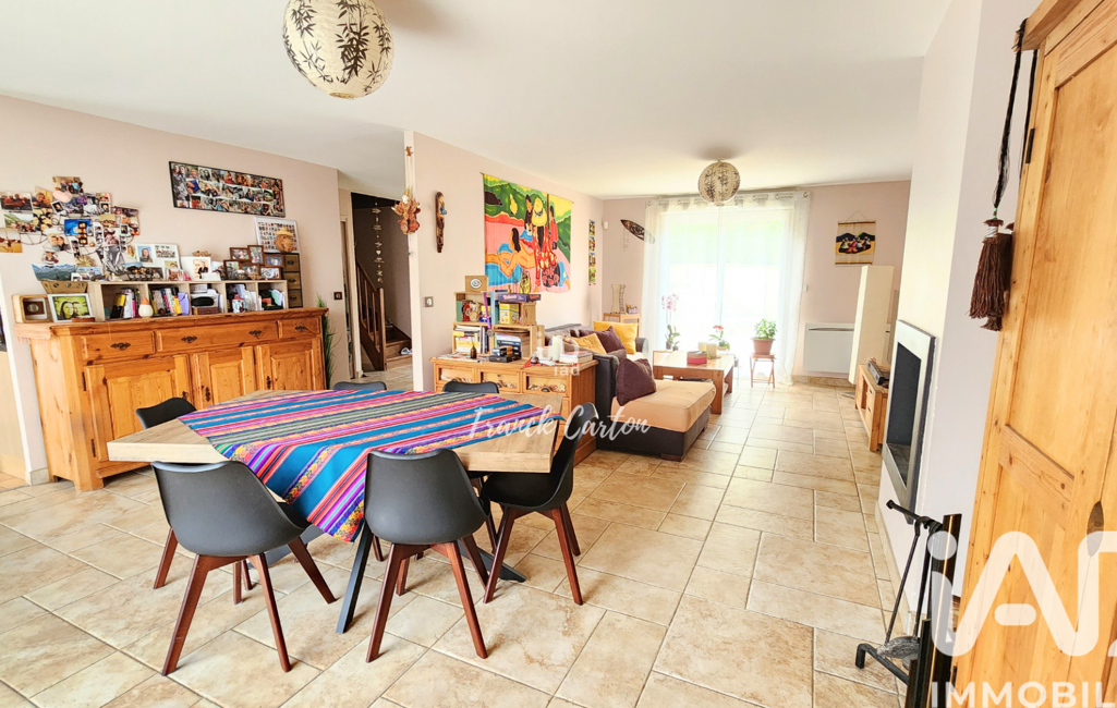 iad France - Franck Carton vous propose: Cette magnifique maison individuelle de 140 m² exposée plein SUD comprenant 4 chambres avec dressing. Une belle entrée avec vestiaire vous ouvre l'accès au salon/séjour double avec cheminée à insert et bénéficiant d'une double exposition. La cuisine aménagée et équipée avec son espace dinatoire est en accès direct avec la deuxième terrasse par le biais d'une baie vitrée. Un cellier est disponible en arrière cuisine. Pour compléter le tout au rdc un wc indépendant et une chambre avec salle d'eau offrant ainsi une VIE DE PLAIN PIED.