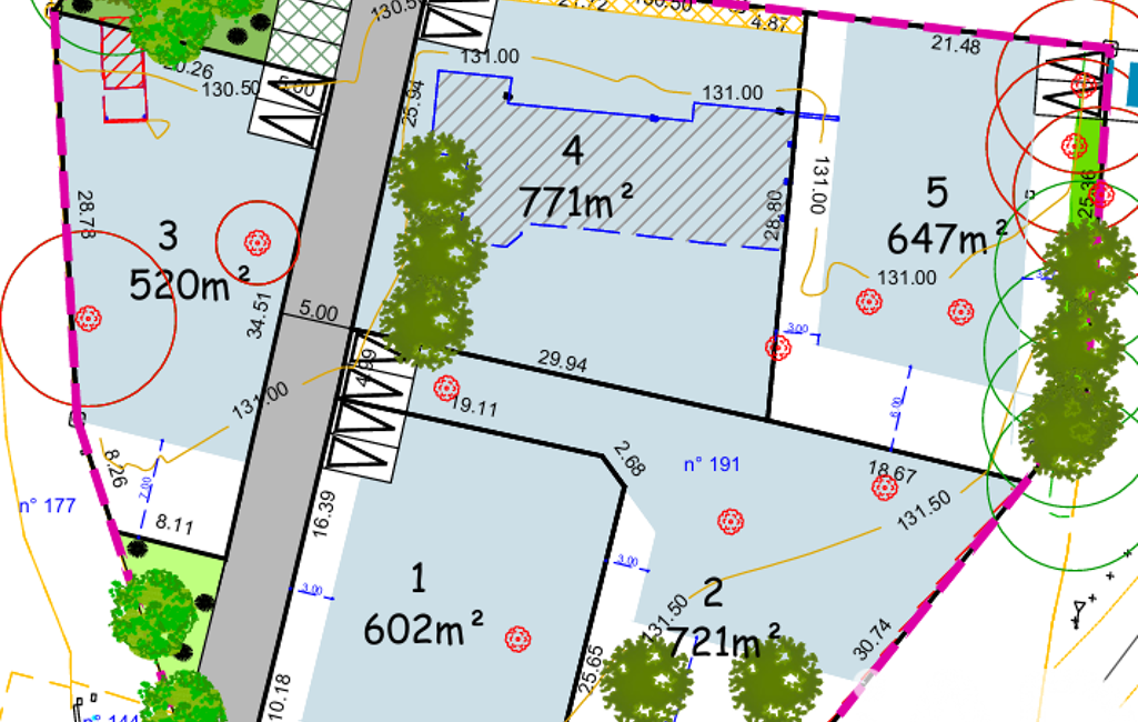 Ce terrain de 713m² est vendu borné et viabilisé, terrain plat.