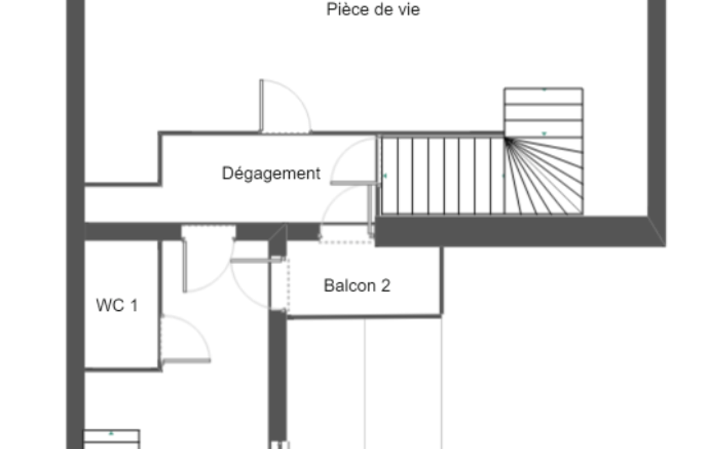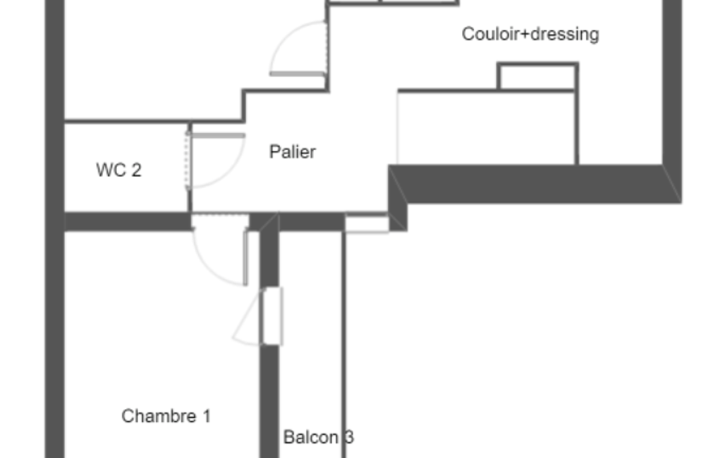 Un bureau avec accès sur un balcon communique avec la chambre avec douche ce qui peut permettre de créer un espace de vie indépendant.