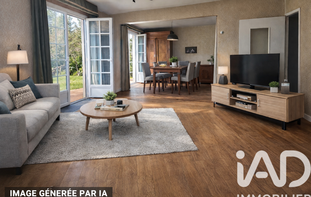 iad France - Erwan Huré vous propose: Cette maison des années 70 sur sous-sol complet vous offre une toile vierge pour imaginer votre futur intérieur. Garage intégré en sous-sol, accès direct au rez-de-chaussée, volumes généreux : tout est là pour repenser la maison à votre goût.