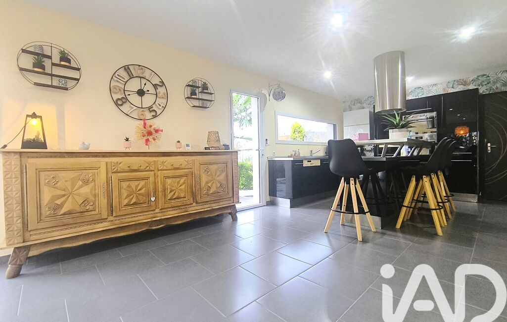 La pièce de vie, aux proportions harmonieuses, accueille une cuisine contemporaine entièrement équipée, ouverte sur un espace salon-séjour chaleureux, idéal pour recevoir.