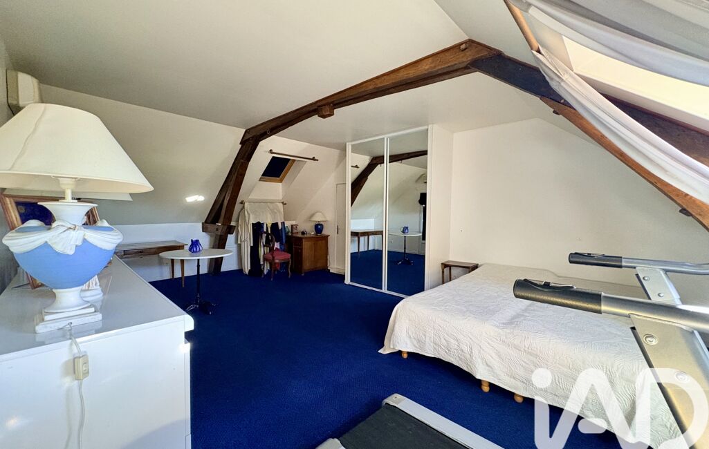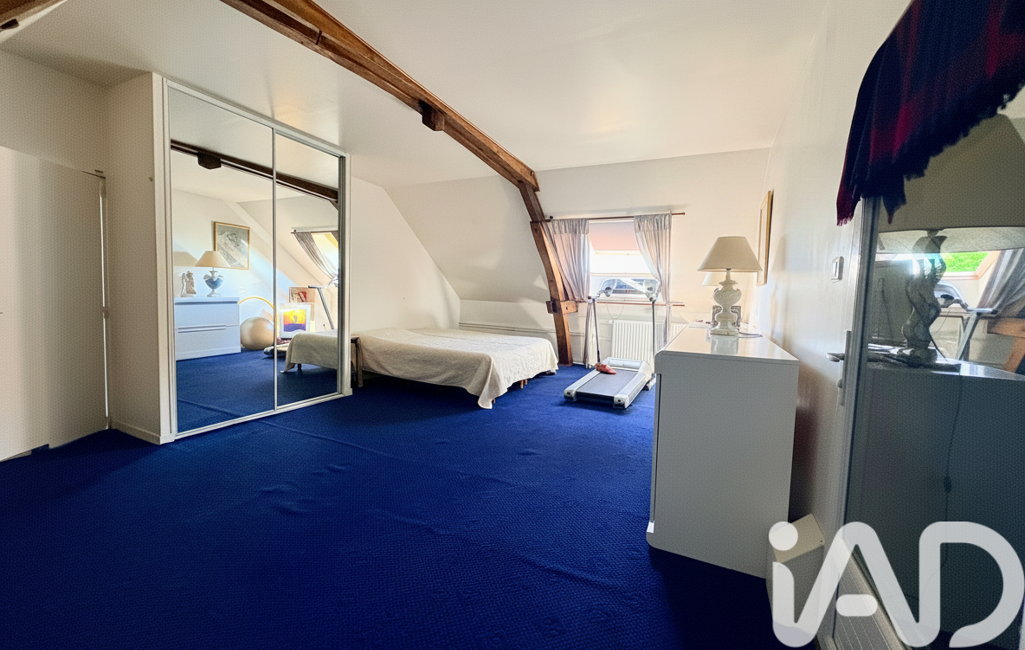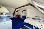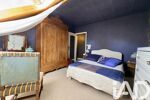 À l’étage, l’espace nuit se compose de trois chambres, dont une particulièrement spacieuse de plus de 22 m², ainsi que d’une salle de bain avec WC. Une pièce dédiée à un atelier artistique vient compléter cet étage, de même qu’un bureau pouvant faire office de chambre d’appoint, bien que sa surface soit inférieure à 9 m².