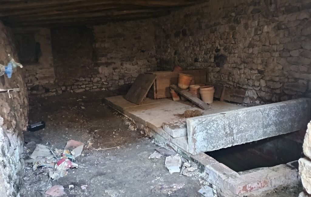 De plus, une grange, 3 étables dont deux avec mangeoires et une cave avec une source, projettent de beaux aménagements atypiques ou tout simplement un bûcher, du stockage.