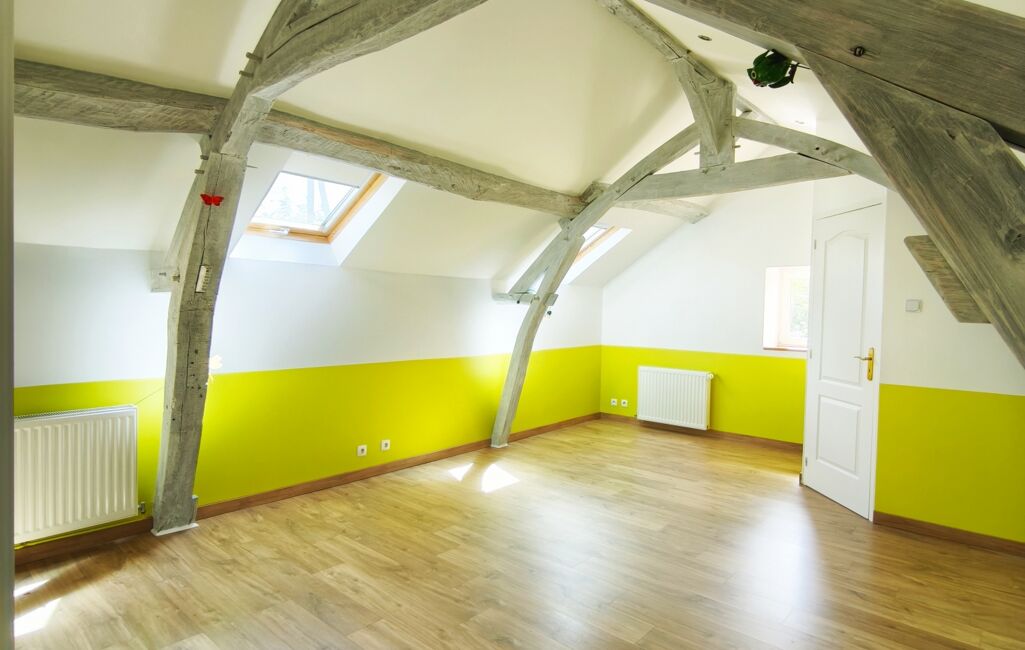 Au 1 er étage, vous arriverez sur un palier avec un espace pouvant être aménagé en bureau, une salle de bain avec douche, baignoire et un WC. Une grande chambre pouvant être séparée pour en créer une troisième.