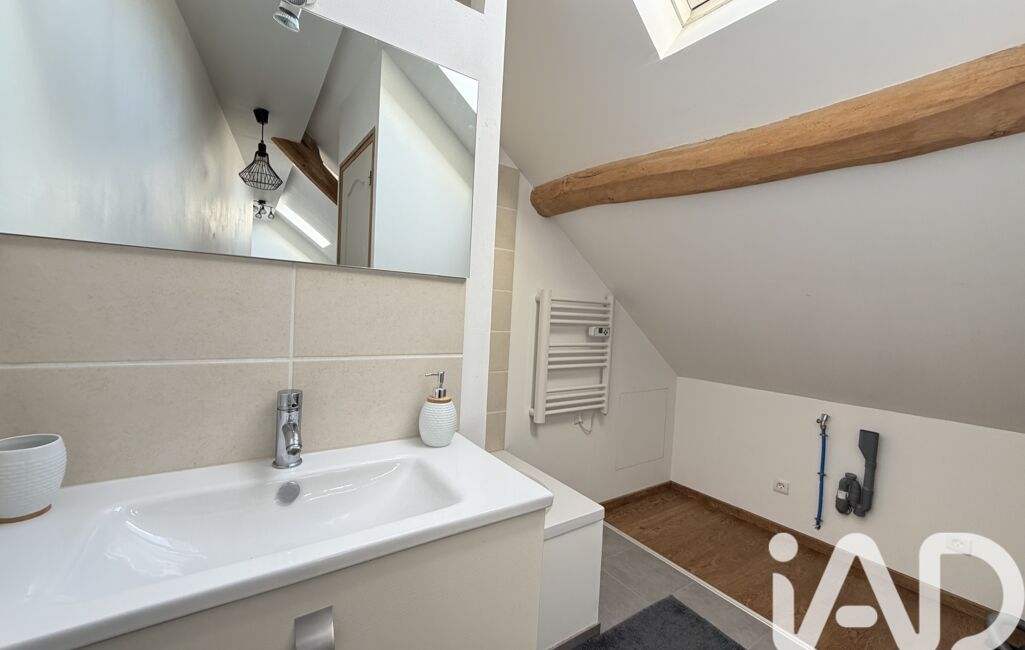 À l'étage : 1 chambre, 1 salle de bain aménagée également (avec emplacement pour la machine à laver) et 1 wc séparé.