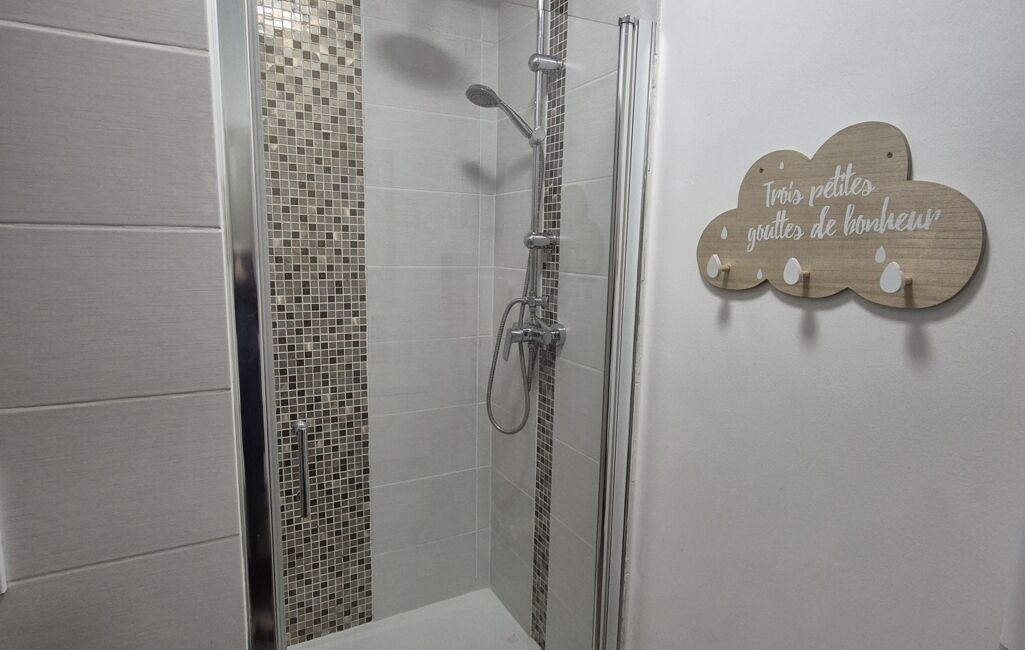 La maison bénéficie de nombreux placards et d’un petit espace véranda à l’entrée, idéal pour les rangements et la praticité au quotidien.