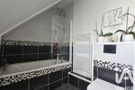 Au rez-de-chaussée, vous découvrirez un espace de vie chaleureux de 33 m² avec cheminée et accès sur la terrasse et le jardin, une cuisine séparée neuve entièrement équipée, ainsi qu’une salle de douches et des toilettes. Le palier, à l'étage, dessert trois chambres qui offrent chacune de confortables espaces de repos. Une salle de bain avec wc complète ce niveau.