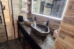 une salle d'eau avec une grande douche a l'italienne et des WC.