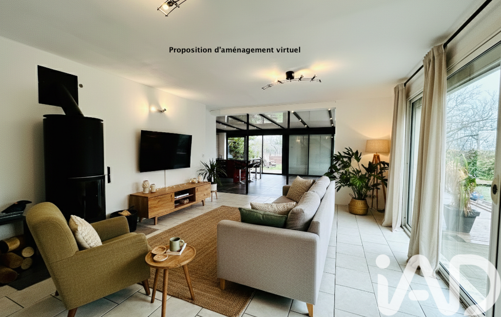 - une pièce de vie XXL => un vaste salon-séjour traversant, baigné de lumière grâce à ses larges baies vitrées. Pour vos soirées d'hiver, un poêle à bois apporte une touche cosy et chaleureuse