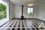 -Séjour lumineux avec poêle à bois et baie vitrée à galandage ouvrant sur un balcon