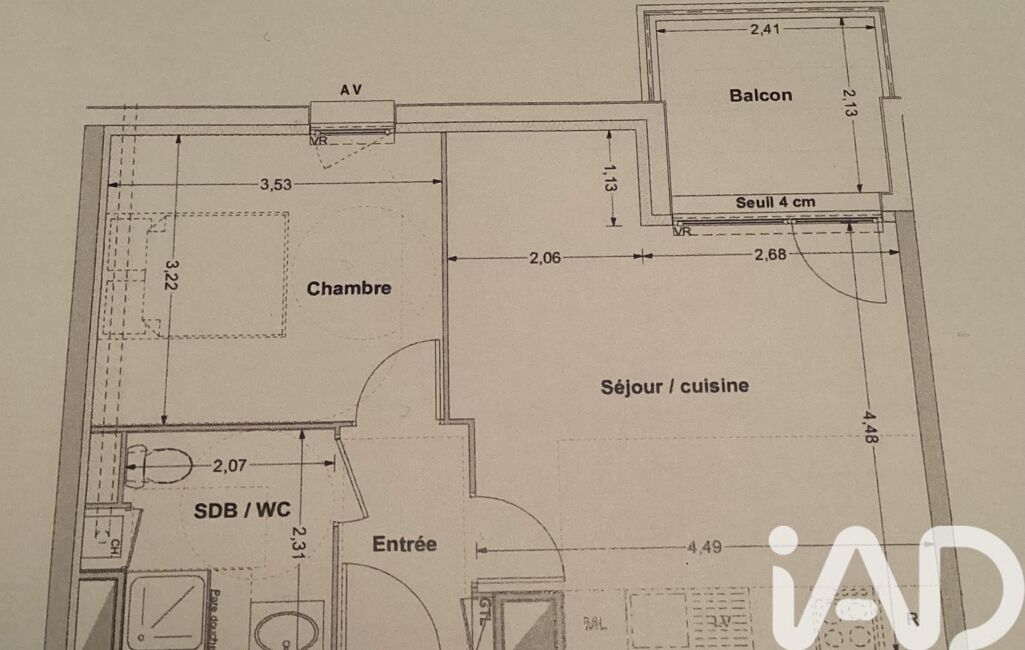 Agréable appartement 2 pièces comprenant : une entrée, un séjour avec coin cuisine aménagé et équipé, une chambre, une salle d'eau avec sèche serviettes, WC, une accueillante terrasse de 5,04 m2, volets roulants électriques.