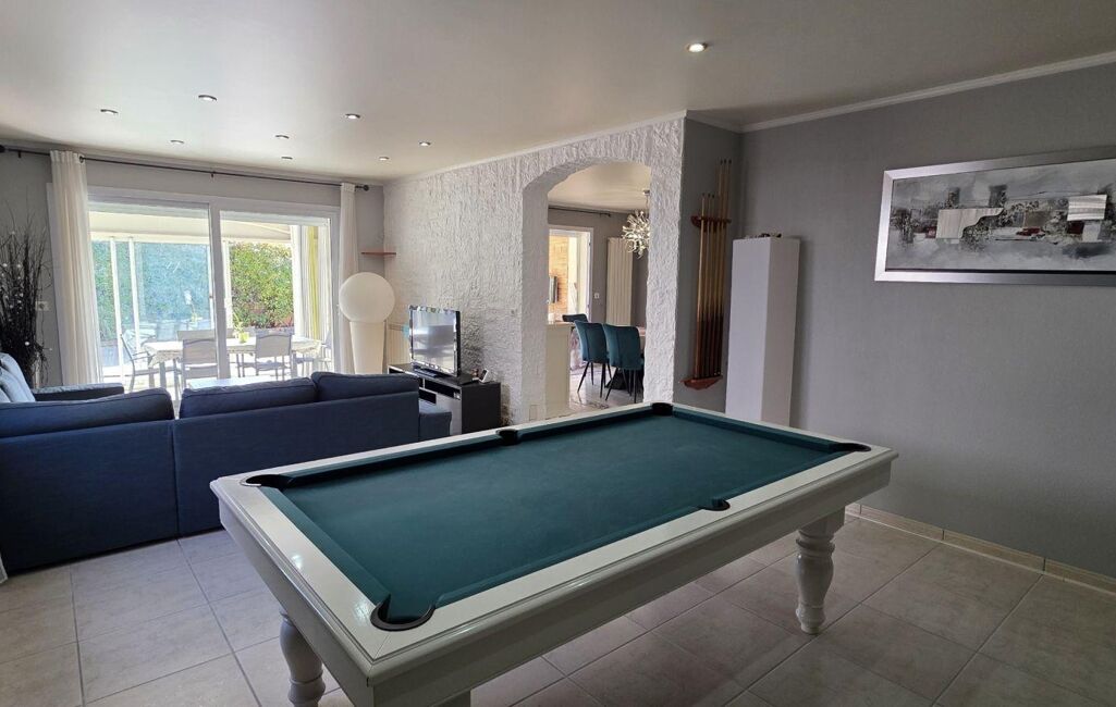 -un séjour spacieux avec un coin billard ou home cinéma.