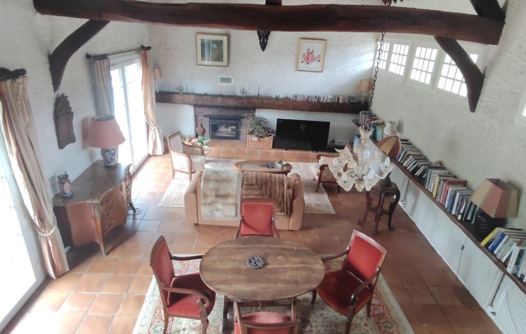 iad France - Danielle JUNCA vous propose: Superbe chaumière de 148 m² habitables, implantée sur un parc clos et arboré de plus de 4 000 m², avec piscine chauffée et sans aucun vis-à-vis.