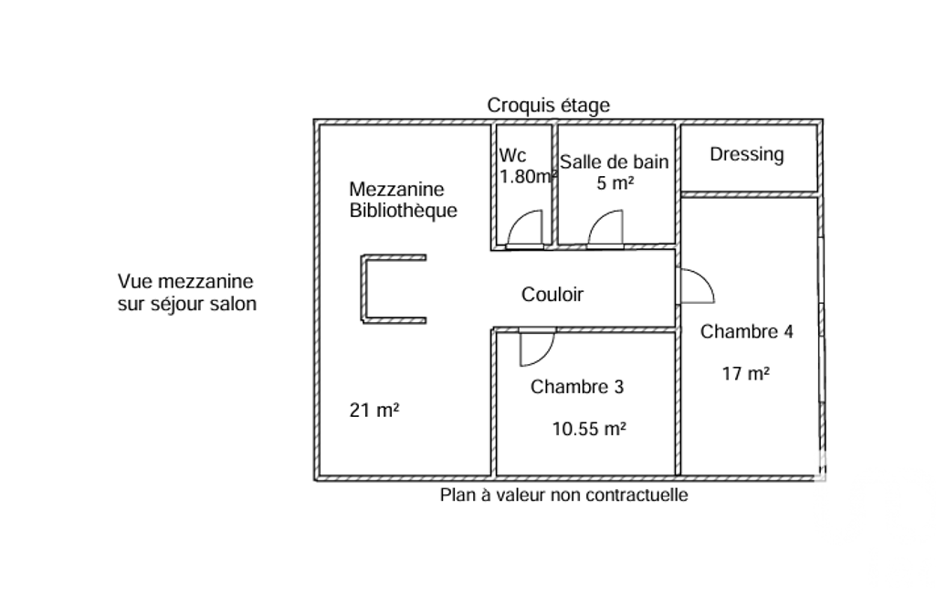 À l’étage, une mezzanine à usage de bureau ou de bibliothèque dessert deux chambres supplémentaires, une salle de bains ainsi que des WC indépendants.