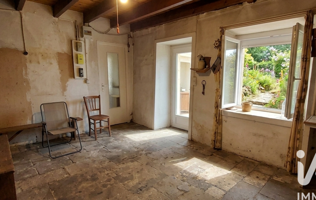 iad France - Aurélie Jouan vous propose: Pleneuf Val André non loin du Golf , rare a la vente longere entierement a amenager mitoyenne d 'un coté de plus de 130 m² idealement située au calme . Actuellement elle se compose d une piece avec evier , un chambre , salle a manger avec anncienne cheminée , celier avec salle d 'eau , wc . A l étage d'un coté palier 2 chambres , de l autre grenier aménageable . Pas de chauffage . Jardinet ou terrasse .Pas de vis a vis .