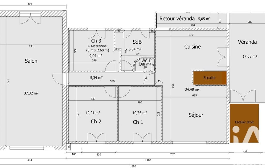 iad France - Jessica Sanfilippo vous propose: Maison individuelle rénovée – 120 m² habitable + 125m² de sous sol – Terrain 1024 m² – Piscine – Terrasse - Trois Chambres / Possibilité de créer une quatrième chambre - Garage - Véranda