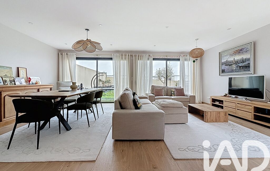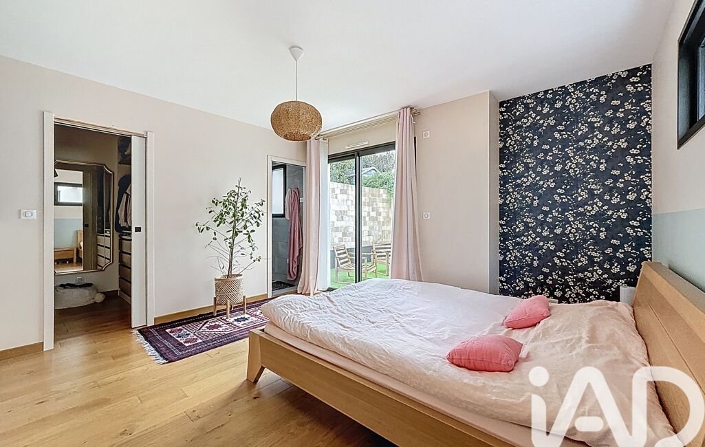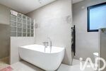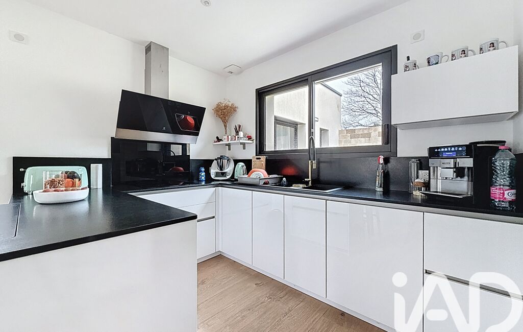 iad France - Arnaud Boucheteil vous propose: À SAINT-HERBLAIN, QUARTIER BOURG, Rue des manoirs, unique dans le secteur, dans un quartier calme, maison plein pied de standing récente (2022) 6 pièces de 134m2 environ sur un terrain de 487m2 environ. Aucun travaux à prévoir. À proximité immédiate des écoles, des transports et des commodités. Cette maison lumineuse (orientée sud) en parfait état avec des matériaux de qualité comprend : une entrée avec rangements, un grand double séjour donnant sur un patio central (accessible depuis le séjour, la cuisine, l'entrée et le couloir de l'espace nuit). Une cuisine américaine, équipée et aménagée (plan de travail en granite) avec un cellier. Un coin nuit desservant, 4 chambres dont une suite parentale avec son dressing, sa salle d'eau et son patio privatif, 2 chambres donnant sur un patio partagé, une salle de bain avec douche et WC et un WC séparé. Un garage avec possibilité de garer plusieurs véhicules au niveau de l'allée d'accès à la maison. Chauffage pompe à chaleur, double vitrage, vidéosurveillance peut être installée, DPE A.