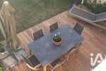 Descendez quelques marches pour arriver sur un beau séjour cosy avec cheminée et accès direct au jardin. Niveau réception, salle à manger ouverte sur une belle terrasse joliment aménagée, cuisine haut de gamme entièrement équipée, fonctionnelle et très moderne.