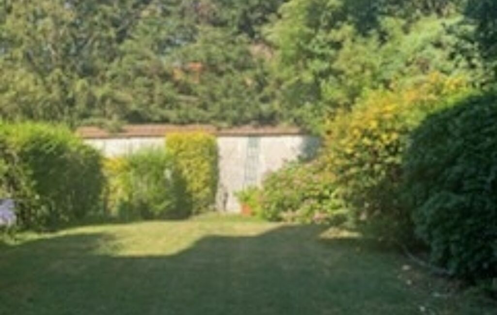 Jardin clos de 184 m², parfaitement entretenu, espace engazonné + terrasse.