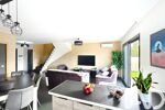 Une entrée fonctionnelle mène à un vaste séjour baigné de lumière, avec sa cuisine ouverte entièrement équipée. Un espace de vie convivial qui s'ouvre directement sur le jardin. Vous trouverez également une buanderie pratique, un WC indépendant et un garage attenant.