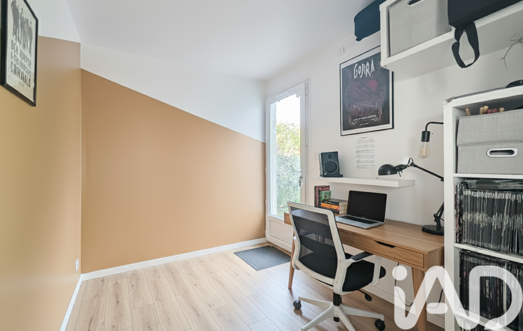 À l’extérieur, le charme opère : un jardin à l’avant, un autre sur le côté avec un abri idéal pour le rangement, et deux places de stationnement privatives juste devant le logement. Le garage a été scindé en deux : une partie stockage ou garage à vélos et motos, et une autre aménagée aujourd’hui en bureau.