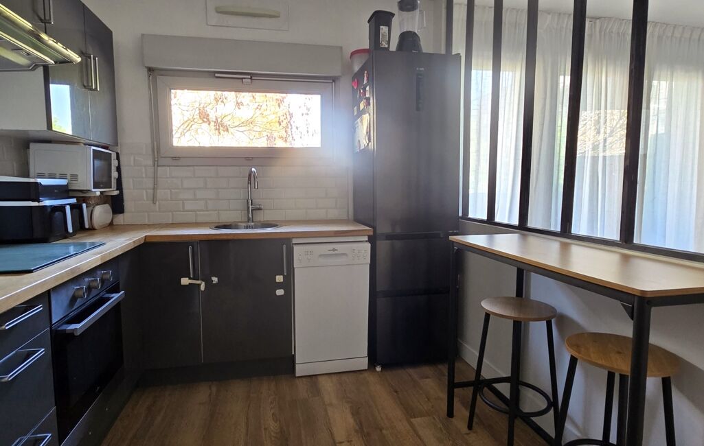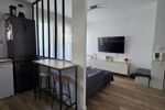 Il se compose d’une entrée avec placard, d’un séjour lumineux donnant accès à un balcon, ainsi que d’une cuisine semi-ouverte délimitée par une verrière.