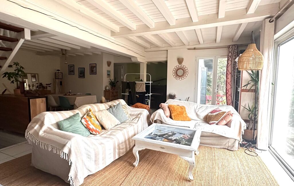 Côté extérieur, la maison dispose d’un jardin clos et de plusieurs terrasses, dont une avec douche extérieure. Stationnement privatif sur la parcelle.