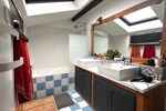 L’étage comprend trois chambres et une salle de bains avec baignoire, double vasque et WC.