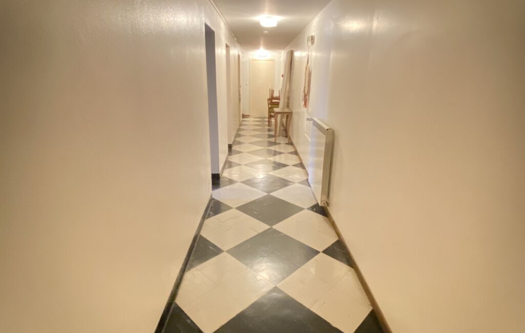 Cette habitation offre une entrée accédant au premier étage à un appartement composé d'une salle à manger, un salon, une cuisine aménagée et équipée ouverte sur le salon, 2 chambres, un bureau , une buanderie, une salle de bain avec wc, un cellier et un second wc. Cette entrée dessert également l'accès aux anciennes chambres de l'hôtel au nombre de 5, toutes aménagées d'une salle d'eau et wc.