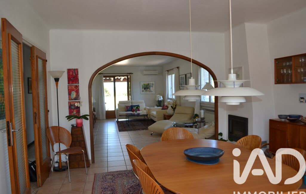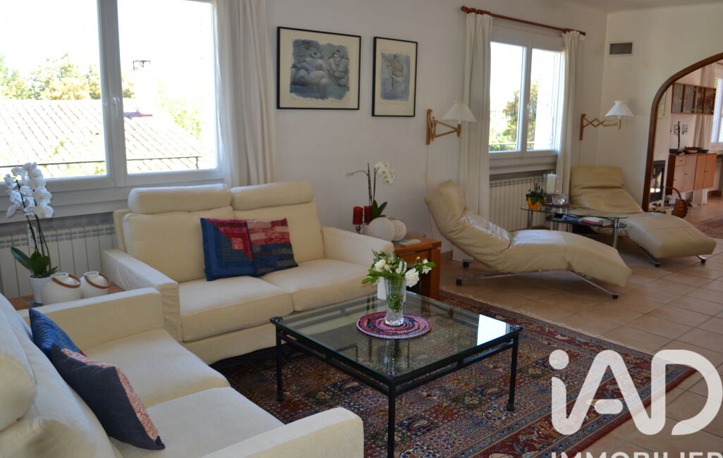 La grande pièce de vie s'ouvre sur un balcon filant d'un coté et sur une terrasse avec sa piscine au sel de l'autre offrant une vue dégagée sur le jardin arboré et les environs.