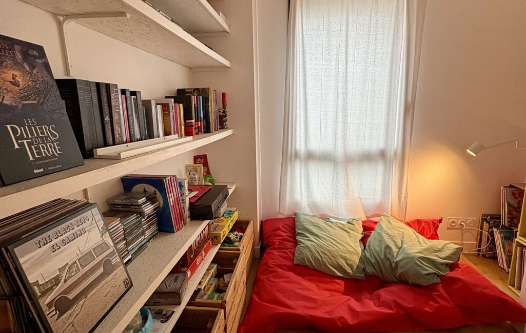 •Un palier avec bibliothèque intégrée