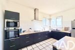 A gauche de l'escalier, vous retrouvez la cuisine ouverte sur le salon. La cuisine vient d'être changée. Deux grandes fenêtres éclairent ce coté. Le salon lui dispose de trois porte fenêtres donnant toutes sur le balcon.