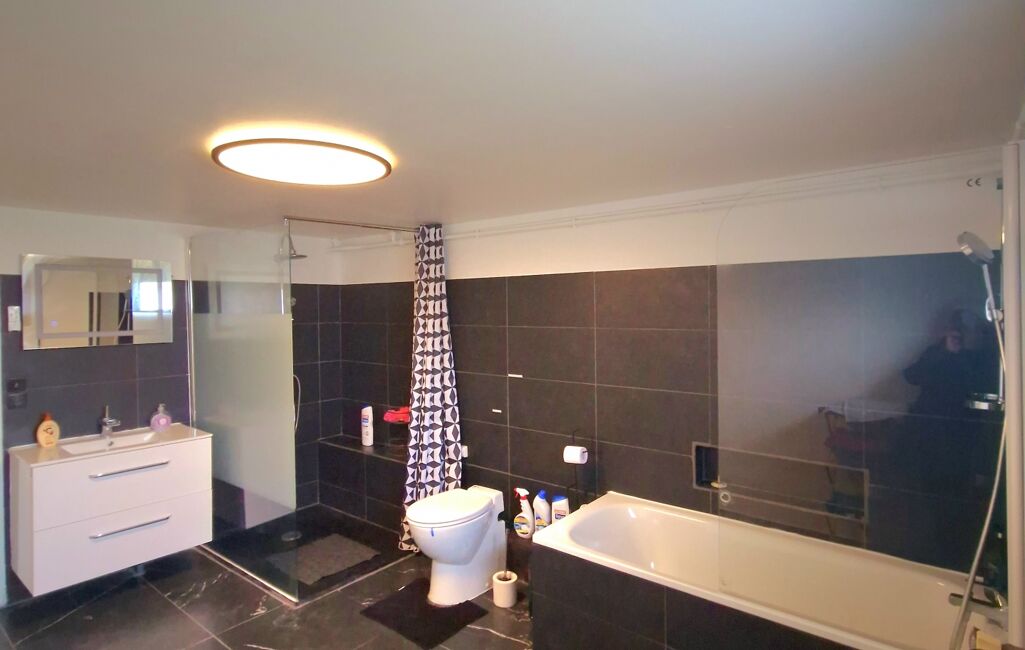 Au sous-sol, laisser-vous charmer par une vaste salle de bain de 12 m² ainsi qu'une chambre de 17 m².