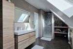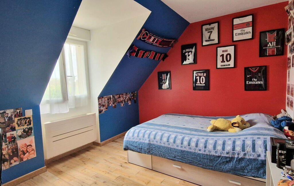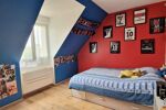À l'étage, 3 chambres donc une avec possibilité de créer une suite parentale avec dressing et salle d'eau, actuellement utilisés en chambre, bureau et dressing, une salle de bain avec douche + baignoire et 1 wc indépendant.