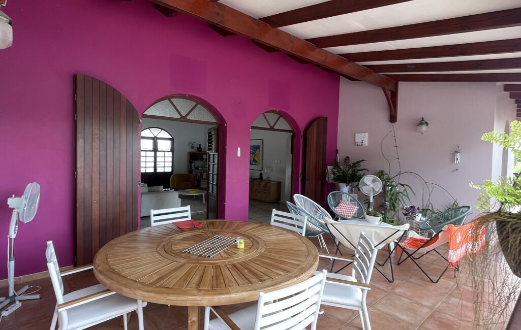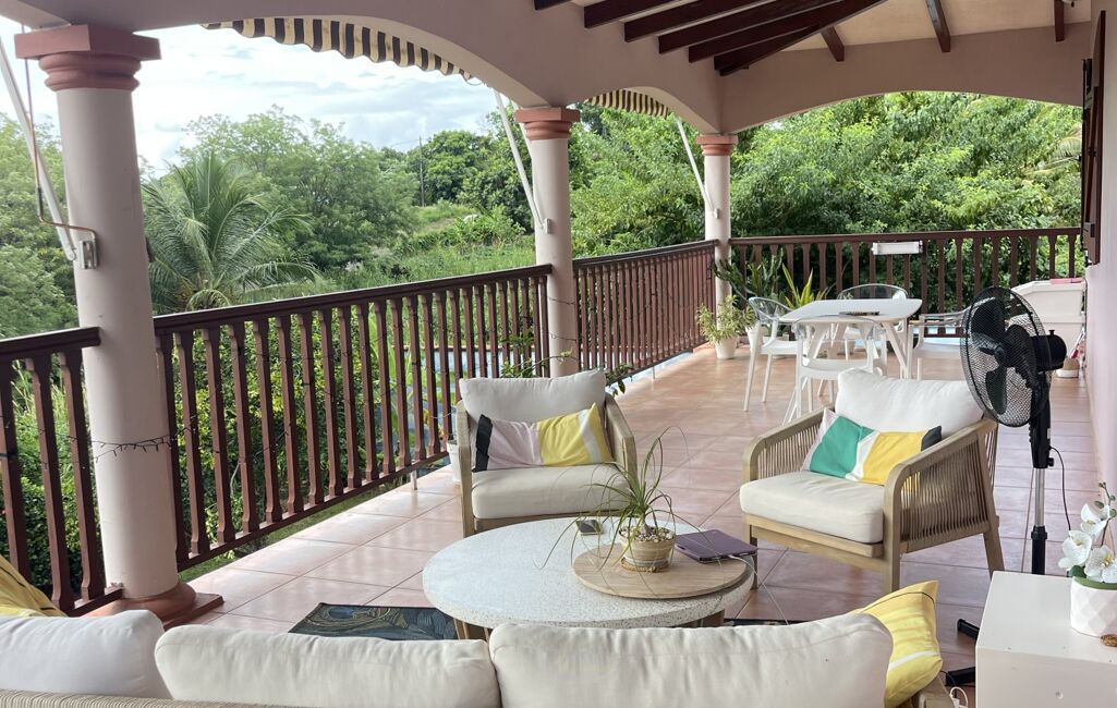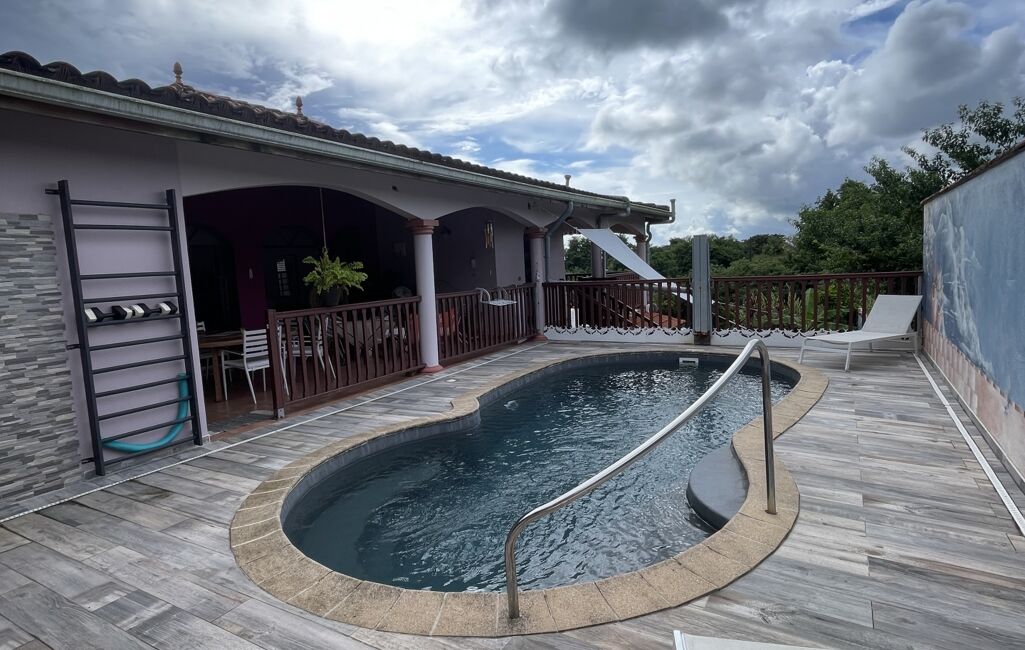 iad France - Sylvie Nathie vous propose: Secteur cité scolaire de RAMA Solide villa avec vue sur la Mer et le Rocher du Diamant - d'environ 120 m2 + 43 m2 de terrasses couvertes avec une toiture en tuiles, sous sol total, 1000m2 de terrain composée comme ceci, entrée sur la salle, une cuisine aménagée et équipée de qualité et quasi neuve, 2 chambres, 1 salle d’eau, 1 wc, 1 suite parentale - 1 piscine au sel , au sous sol - 1 chambre avec salle d’eau et wc, une cuisine , 1 atelier - récupérateur d'eau - portail électrique - Alarme - moustiquaires sur toutes les fenêtres - arbres fruitiers. A quelques minutes des plages de Sainte Luce et de la Nationale - A très vite pour une visite