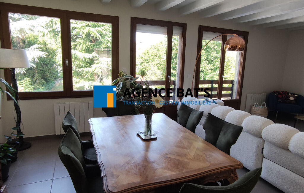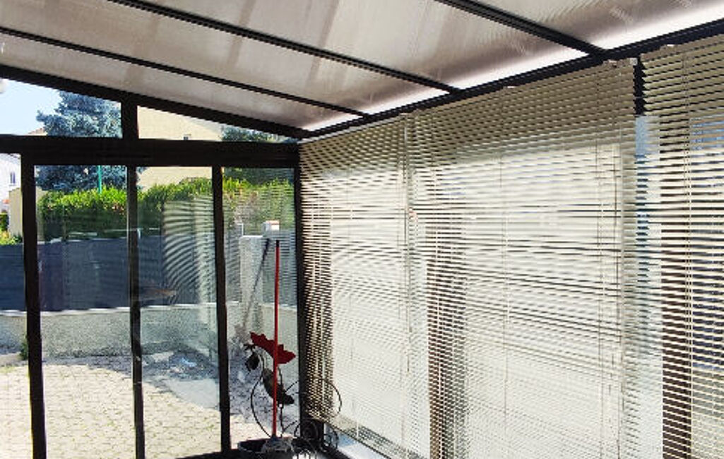 Maison rénovée en duplex inversée avec véranda et piscine.