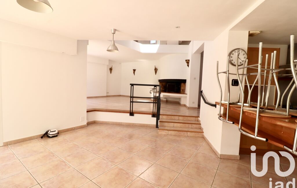 En RDC, spacieuse pièce à vivre de 72m2 avec cheminée, une terrasse de 34m2 en travertin.
