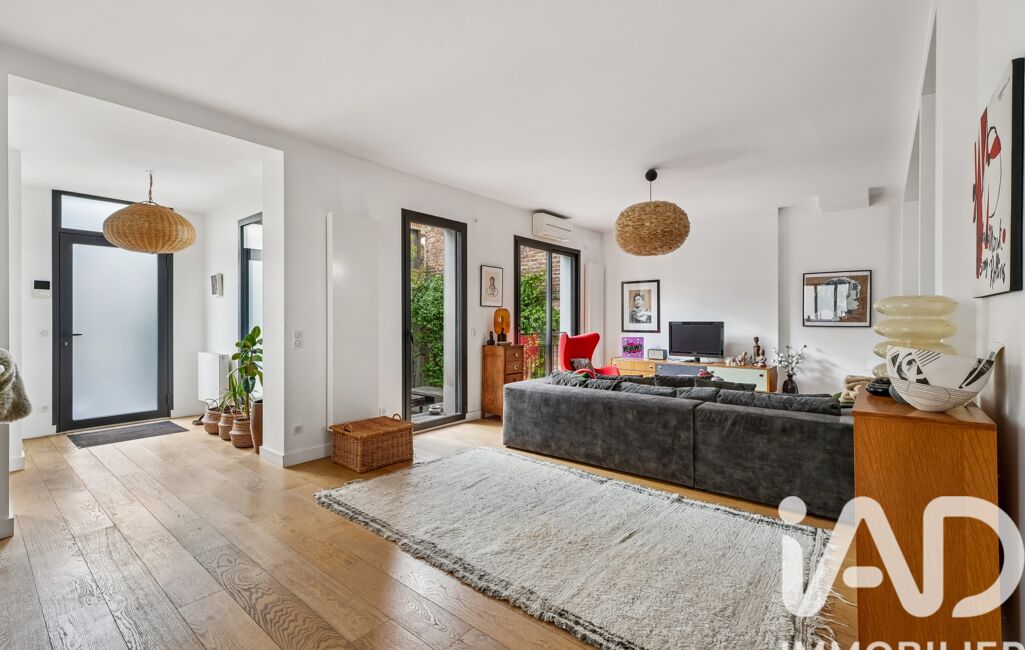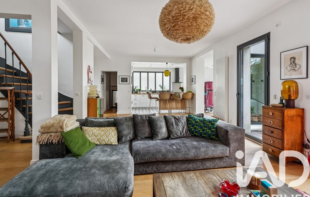 Derrière sa silhouette années 30 (rénovation et extension en 2017), la belle conjugue charme et confort moderne, sans travaux à prévoir. Sur trois niveaux elle déroule de très beaux volumes, à commencer par une lumineuse pièce de vie d’environ 75 m² au rez-de-chaussée : le double séjour épouse la cuisine ouverte entièrement équipée et laisse une place à un coin bureau. L’ensemble se prolonge sur une agréable terrasse en teck pour les beaux jours. Ce niveau compte un wc séparé.