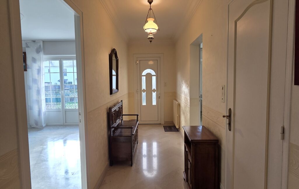 La maison s’ouvre sur une entrée desservant une vaste pièce de vie lumineuse avec cheminé insert, une cuisine indépendante aménagée et équipée, prolongée par une véranda, ainsi qu’une arrière-cuisine et un cellier. Garage attenant avec cave.