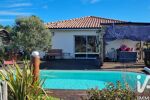 Vous serez séduit par son extérieur pensé pour vous prélasser au soleil : piscine au sel, grande terrasse en bois, deux carports, portail et stationnement facile.