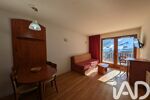 Ce bien propose une agréable pièce de vie lumineuse, ouvrant sur un grand balcon avec une vue sur les sommets et le domaine skiable — un cadre exceptionnel à apprécier en toute saison.