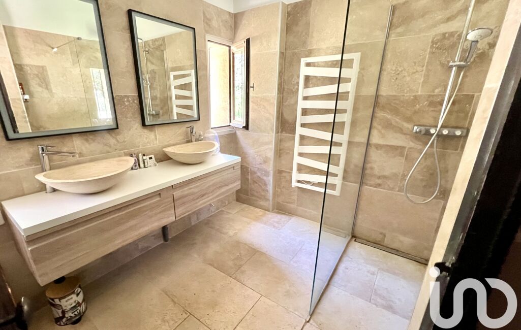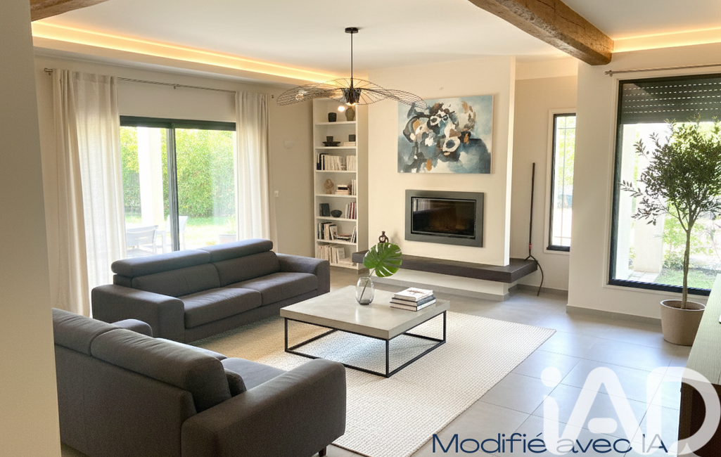 La maison principale offre une pièce de vie lumineuse avec cheminée insert, ouverte sur plusieurs terrasses (dont une couverte), 4 chambres, une suite parentale avec dressing, et 2 salles de bain (une par niveau). Chauffage au sol au rez-de-chaussée, climatisation réversible dans toutes les chambres, garage et haut-vent complètent les prestations de confort.