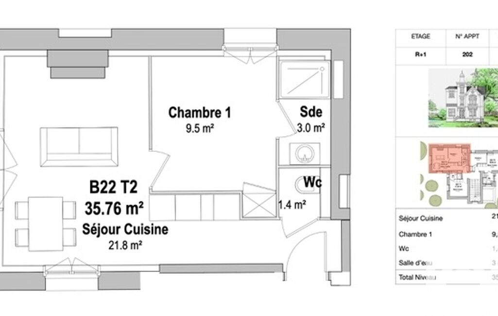- Surface habitable : 36 m²