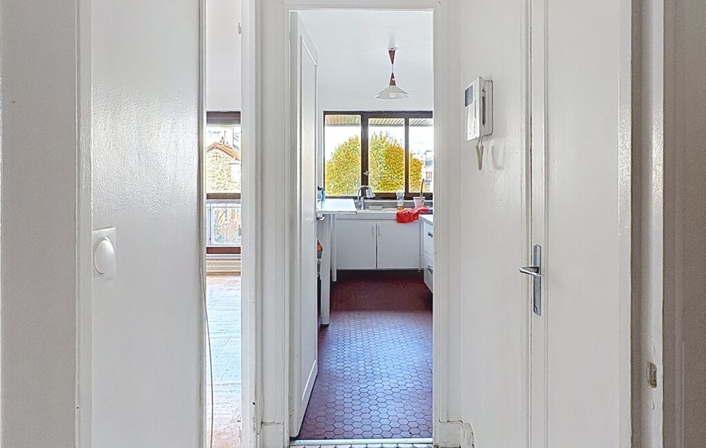L’entrée dessert un vaste double séjour avec cheminée ouvrant sur un balcon plein Sud avec vue dégagée sur un jardin arboré. La cuisine indépendante, facilement ouvrable, permettra de concevoir un espace de vie contemporain et convivial.